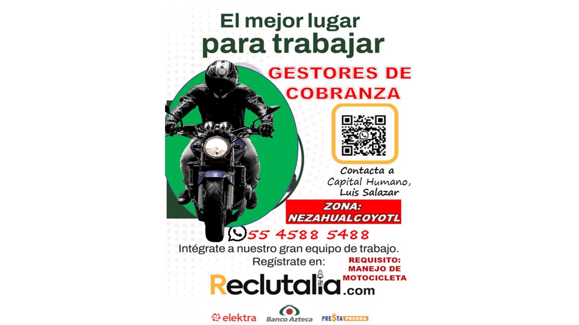 Buscamos un Gestor de Cobranza en Motocicleta para nuestro equipo en Nezahualcóyotl