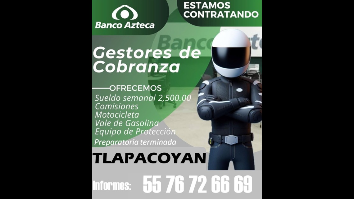 Agente de cobranza en Motocicleta - Zona Tlapacoyan