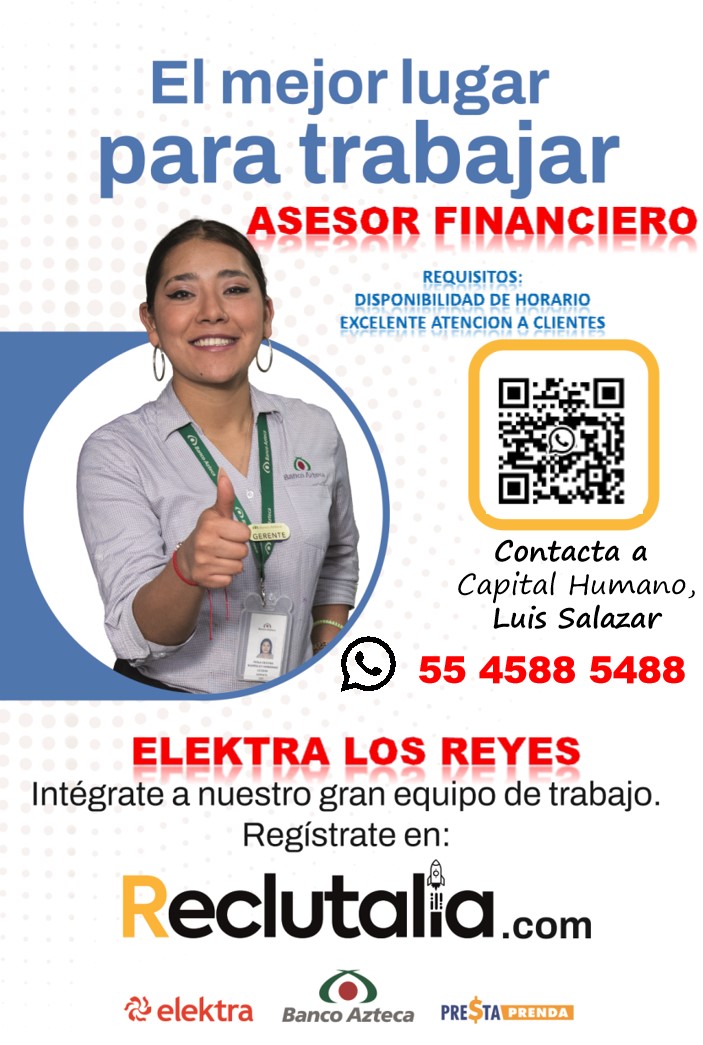 Solicitamos... ASESOR FINANCIERO para Elektra Av Carmelo Perez