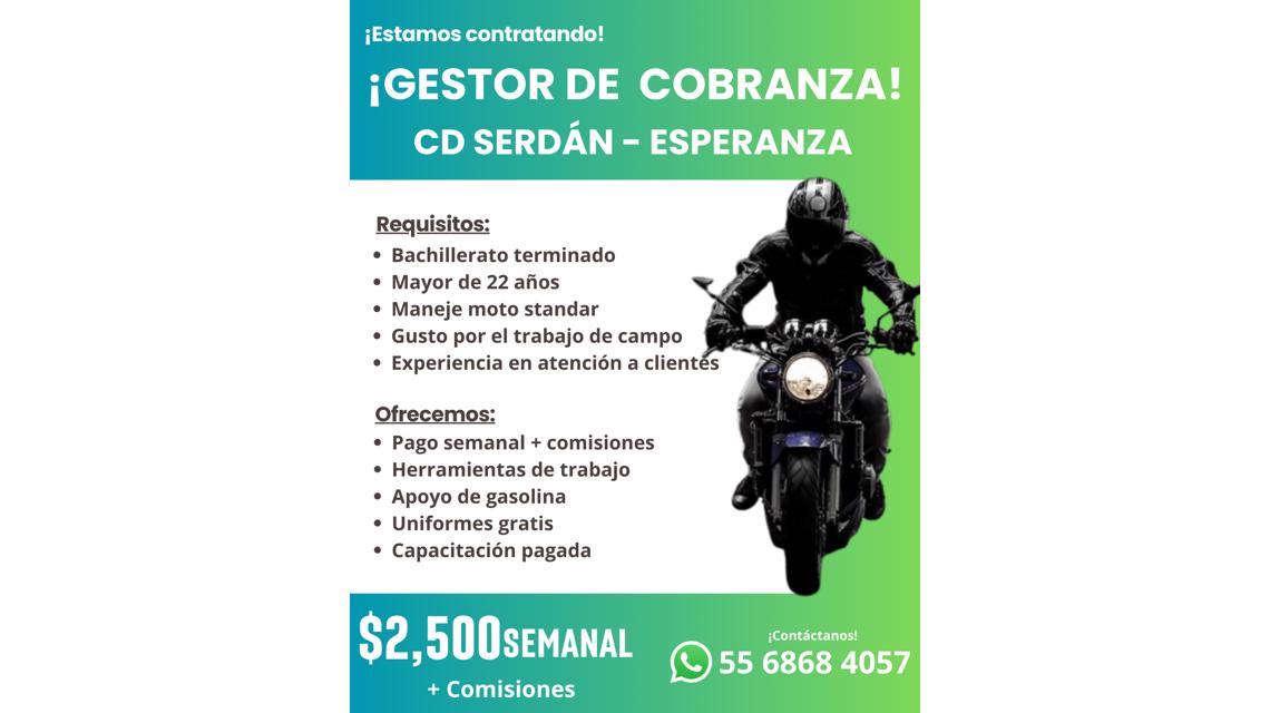 ESTAMOS EN BÚSQUEDA DE GESTOR DE COBRANZA EN MOTO BANCO AZTECA